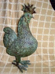 Handsome rooster figurine has so much character in its details and a finish that looks like oxidized bronze. Measures 1' 9" high and 7" in width at the largest point. Great addition to any collection. Click here to go to ebay listing.